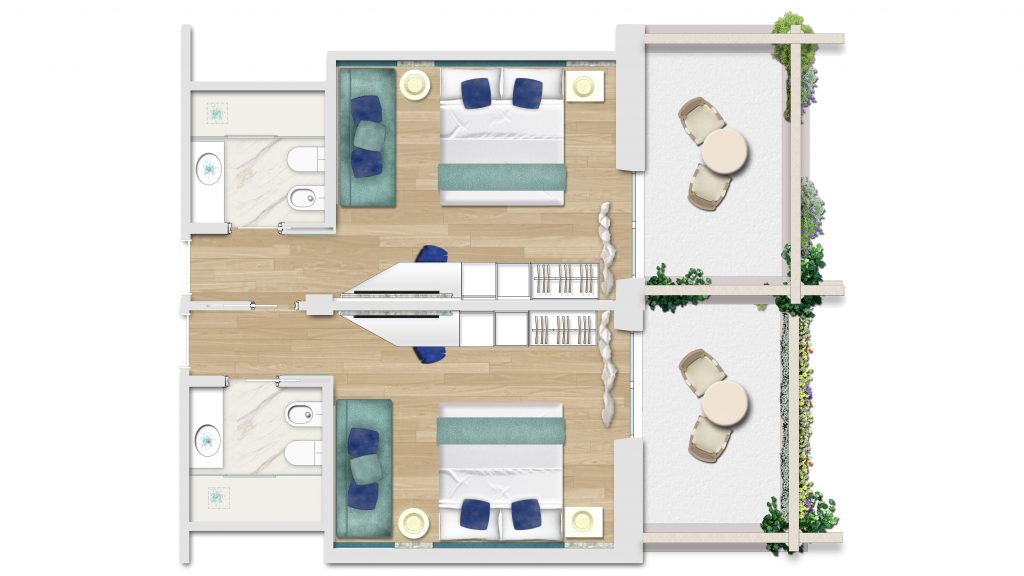 In questo modo può disporre di un vero e proprio appartamento con vista mare, nel cuore di Riccione, con tutti i comfort Luxury Atlantic e perfetto per ospitare fino a 4 persone: doppio spazio, doppio comfort!