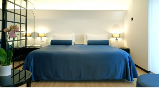Schon beim Betreten der romantischen Suite Positano im zweiten Stock des Hotels vermitteln das Zusammenspiel der Farben und die helle Einrichtung eine typisch mediterrane Atmosphäre.