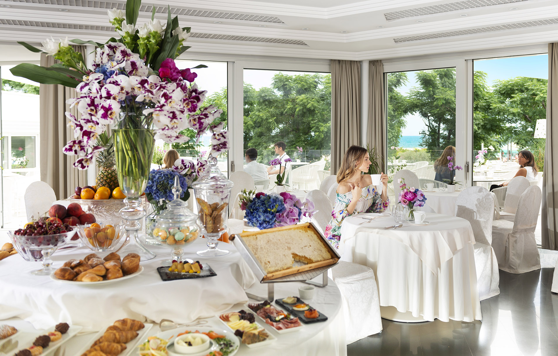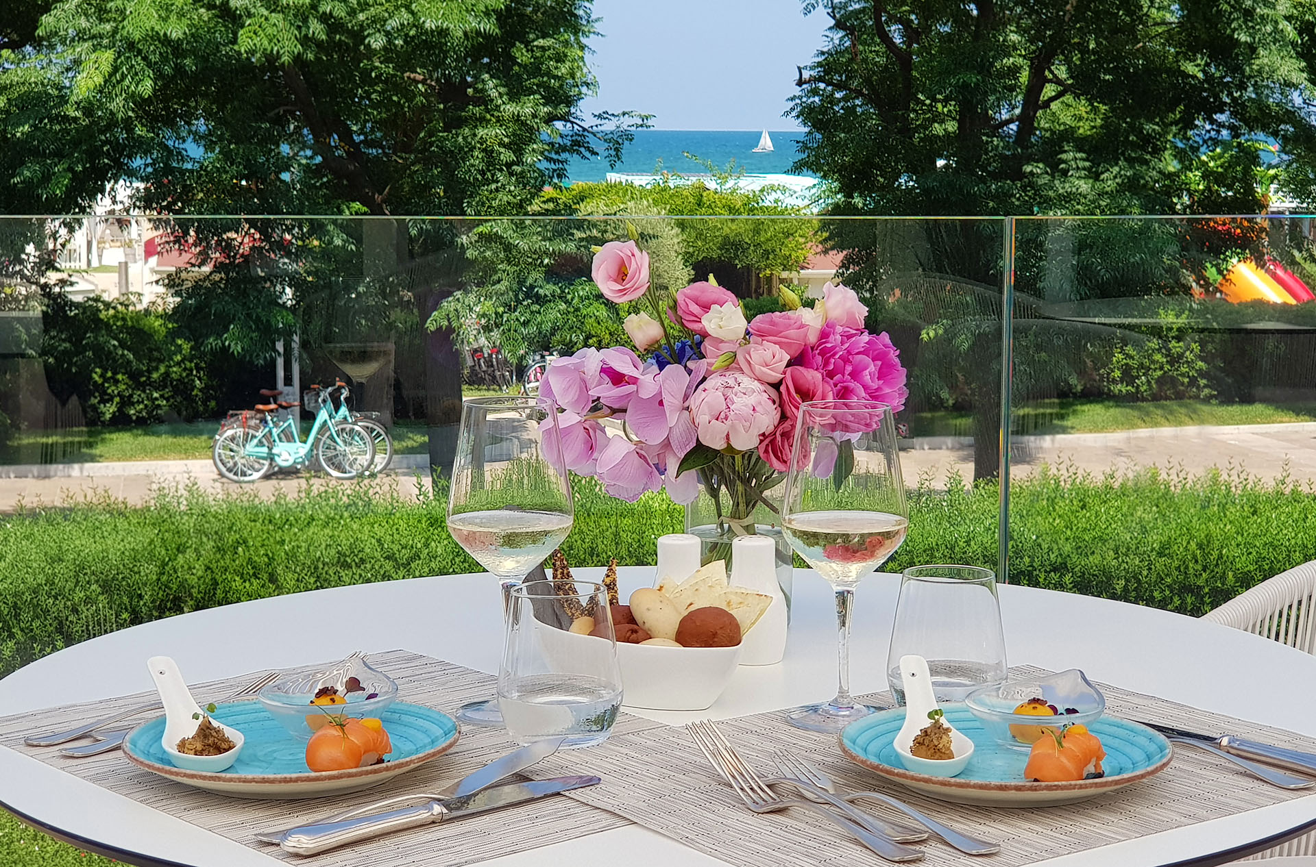 Le nouveau "Terrazza Green", donnant sur le front de mer, est l'endroit idéal pour un petit déjeuner le matin, pour un apéritif rafraîchissantdans l'après-midi et pour un dîner de poisson raffiné.