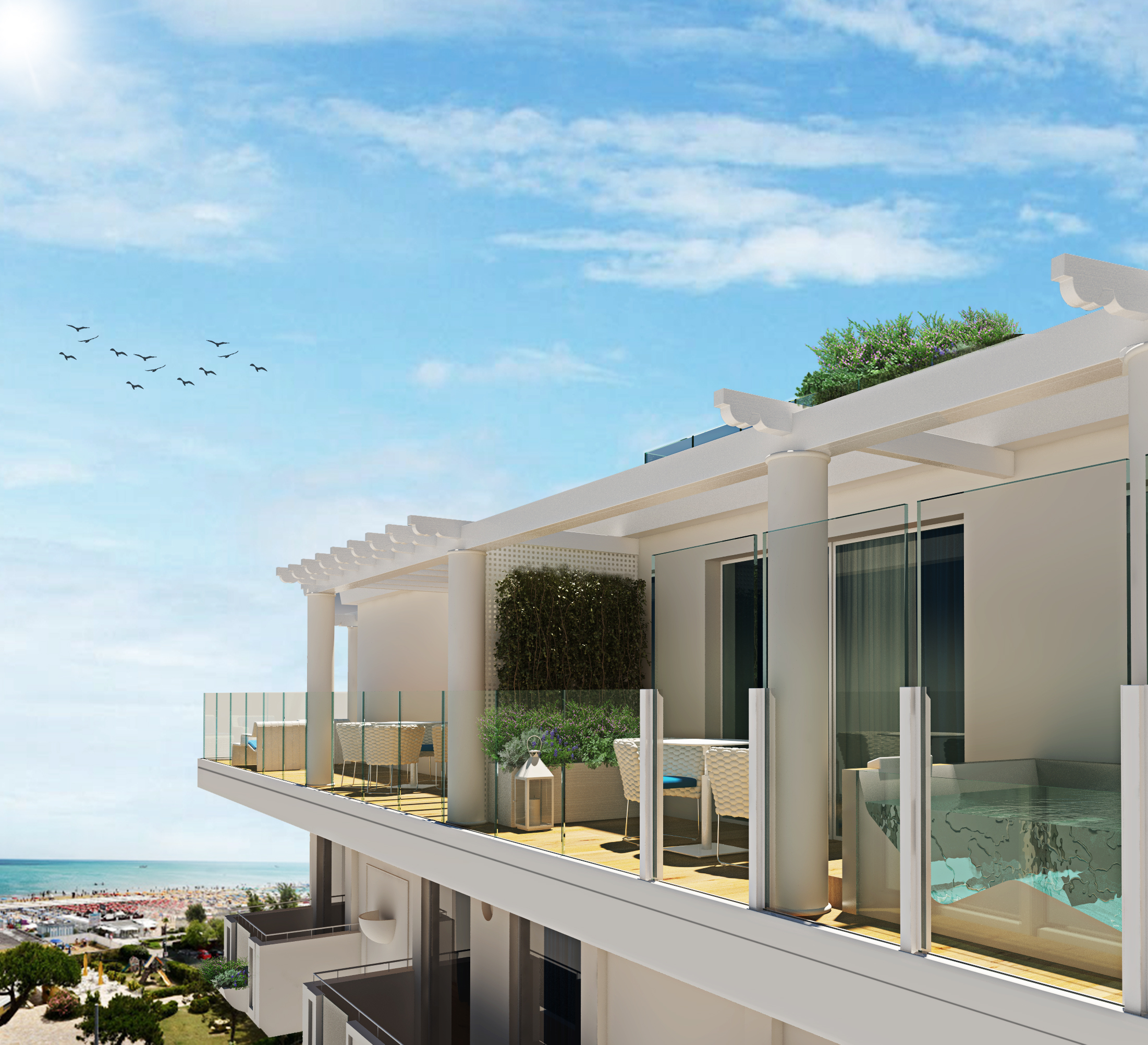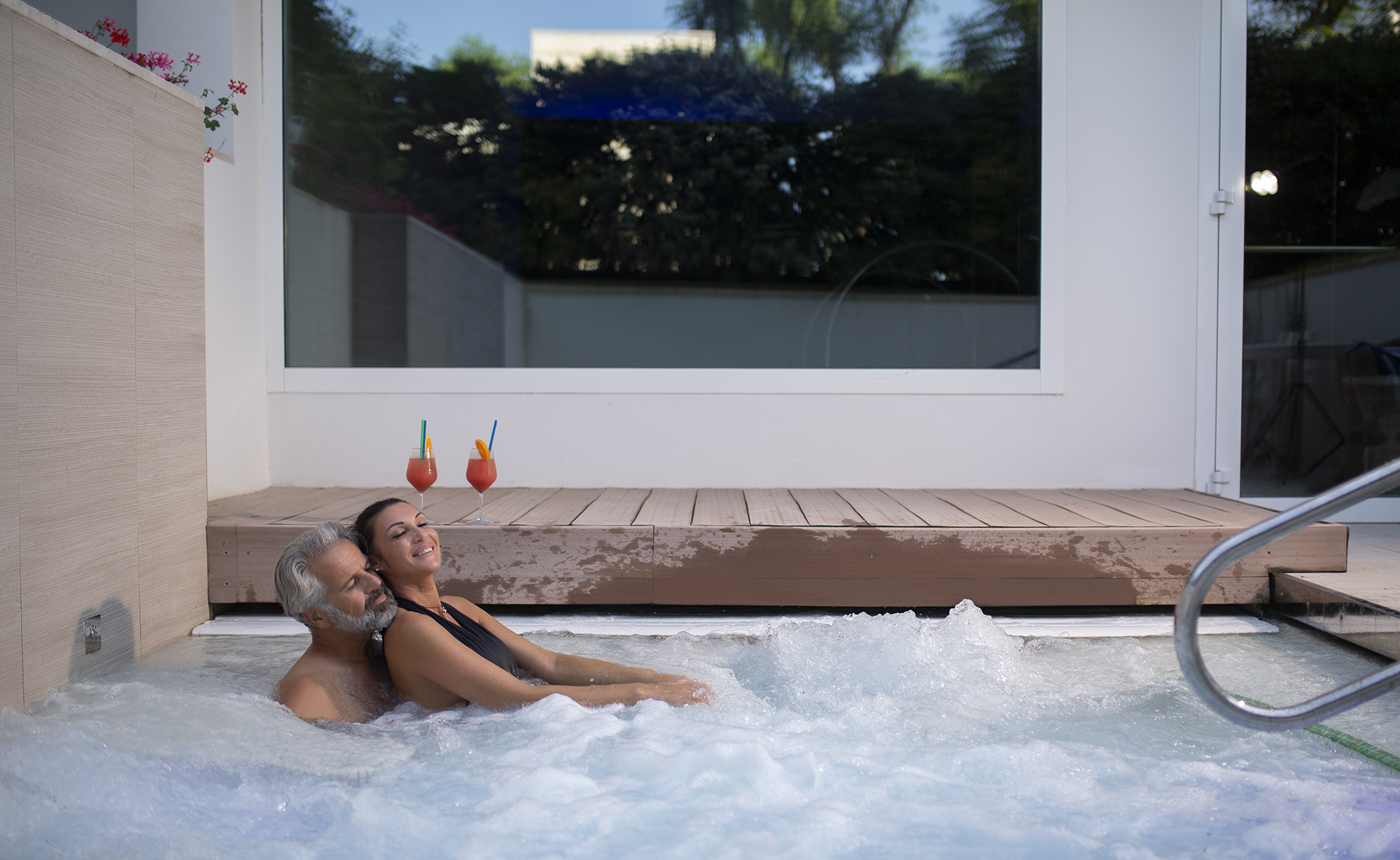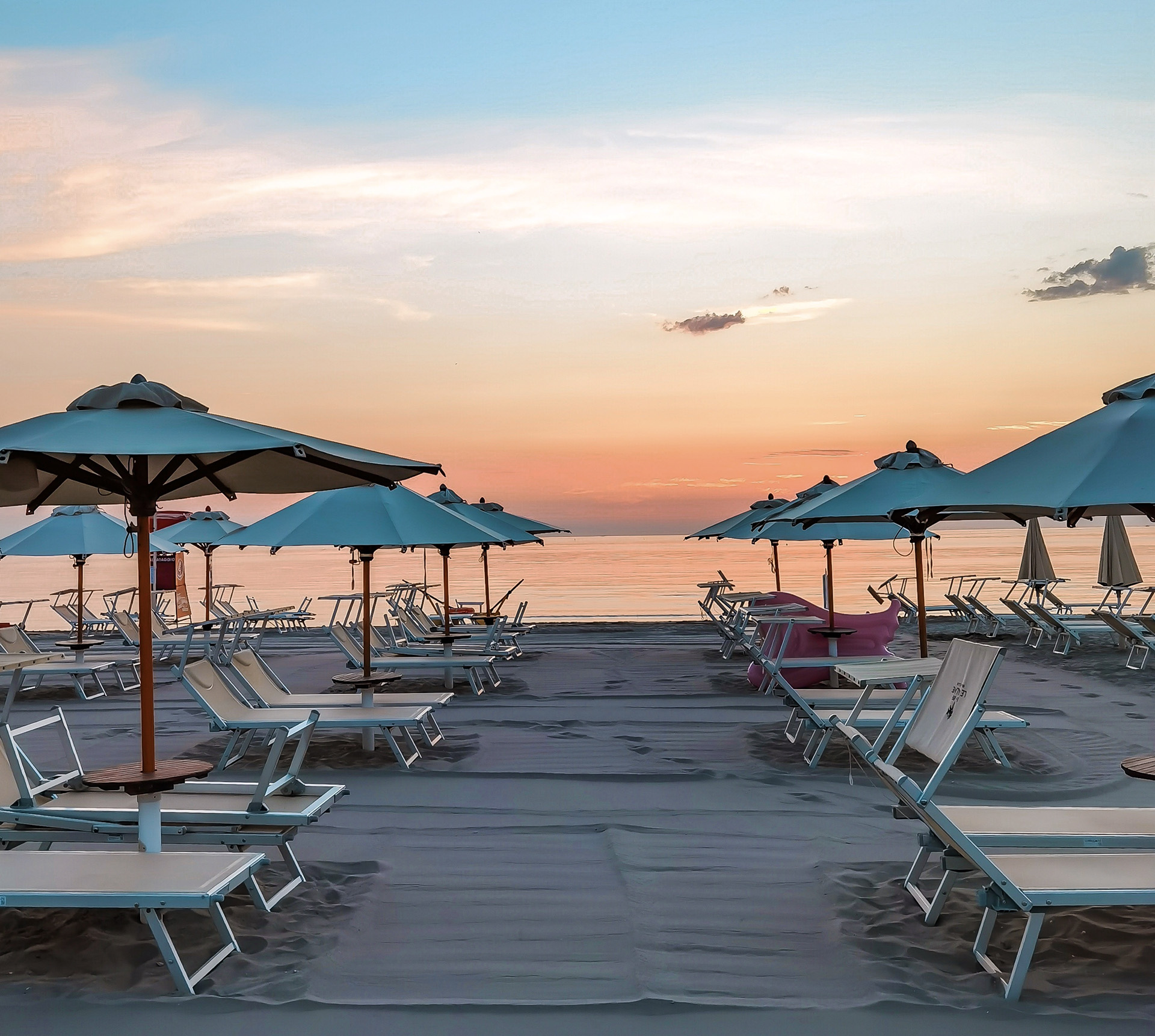 Découvrez le plaisir de vivre en bord de mer et de vous détendre sur la plage, de profiter du centre de Riccione o d'un séjour dans le nouveau Spa et les exclusives piscines avec authentique eau de mer .