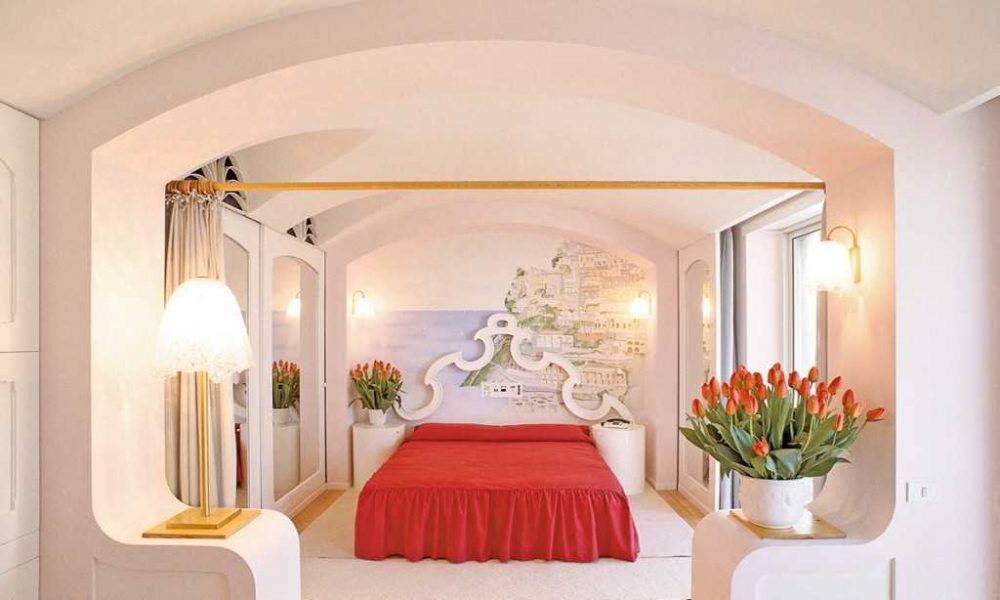 Vous retrouverez le style typique de l’architecture amalfitaine dans les voûtes du plafond et, surtout, dans le grand lit « donnant » sur le célèbre panorama de Positano qui orne le mur.