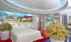 La Suite Junior Hollywood offre une ambiance fascinante, riche en détails luxueux et personnels avec sa moquette blanche très moelleuse, son grand canapé-lit rond surplombé d’un miroir au plafond et son coin maquillage qui rappelle les loges hollywoodiennes.