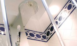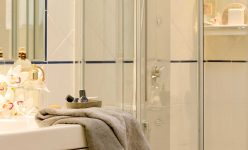 Chaque chambre dispose d’une salle de bains élégamment meublée et caractérisée par les fraîches tonalités des céramiques de Vietri.