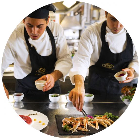 Dal Gran Breakfast Atlantic (una ricchissima colazione, con oltre 100 fragranti pietanze, servita fino alle 11 del mattino) ai deliziosi menù che i nostri chef propongono per pranzo e per cena. Ricette stagionali e piatti light, che rispecchiano naturalmente la qualità del Green e la tradizione gastronomica riccionese. Antonio e Andrea saranno felici di suggerirvi le migliori proposte, e di esaudire ogni vostro desiderio!
