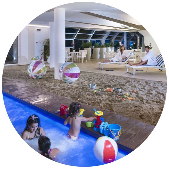 Un'oasi di oltre 500 mq di spazio dedicato al relax, in cui la temperatura di acqua, aria e superfici sono le stesse della Spiaggia nel mese di Luglio, 30°. Rilassarsi qui mentre fuori fa freddo sarà una sensazione davvero indimenticabile!