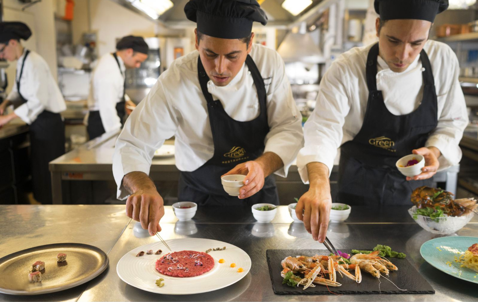 Ottima location il Ristorante Green grazie anche ad un progetto ‘smart’, un ristorante all’aperto con tavoli bianchi, lampade, candele e il verde per contorno, un’atmosfera elegante e romantica condita con del cibo di primissima qualità.