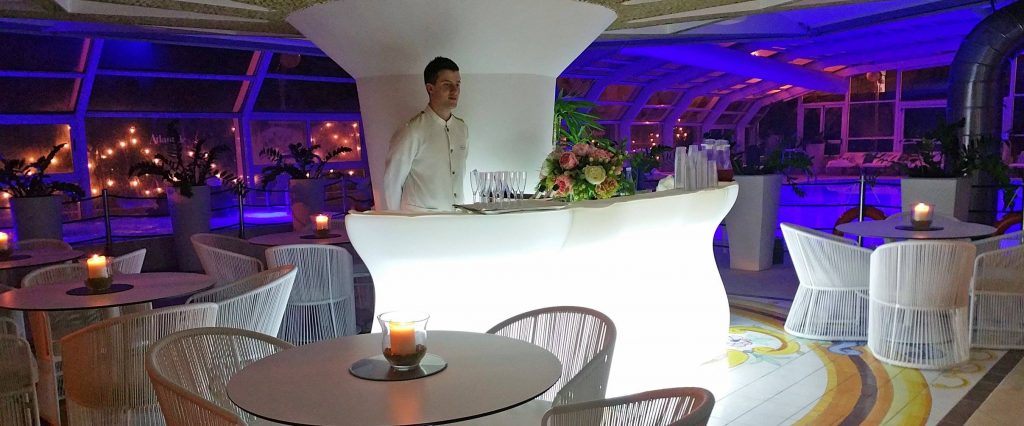 Dalle 20 alle 21 saremo felici di servirvi un delizioso aperitivo ai bordi della nostra piscina coperta Atlantjde, incluso nel vostro ingresso per la serata