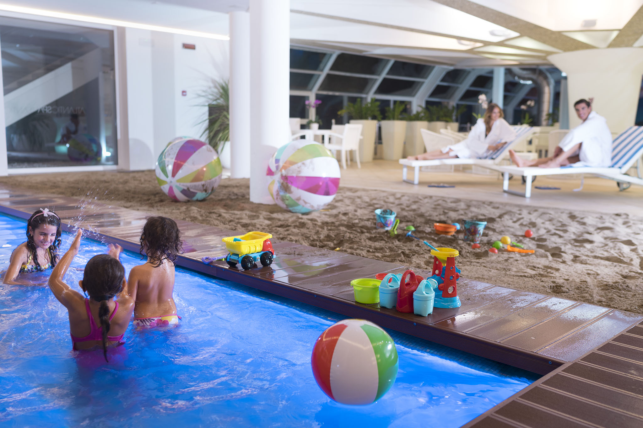 Atlantic Winter Beach è integrata nella grande area wellness Atlantjde, dove trova la piscina coperta e riscaldata con acqua marina, la piscina idromassaggio a 37° dedicata agli adulti e il Bar Atlantjde, perfetto per godersi un cocktail tra spiaggia e piscine o, magari, per pranzare mentre i bimbi giocano sulla sabbia.